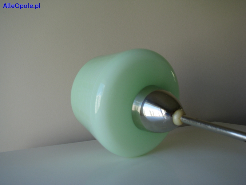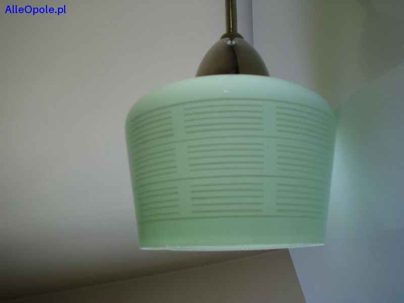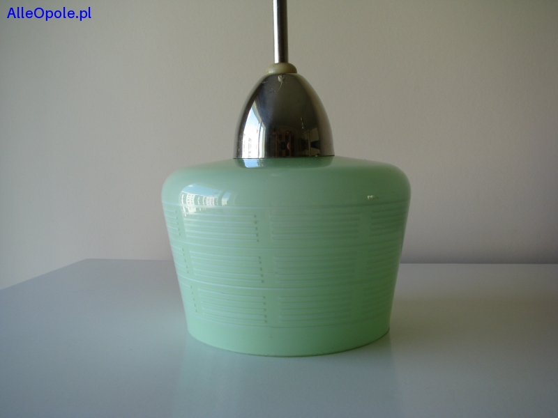 Witam, Sprzedam unikalną, sufitową lampę wiszącą z okresu lat 60-tych PRL. Lampa zasilana jest sieciowo na żarówki z dużym gwintem. Posiada szklany klosz o pięknym, proporcjonalnym kształcie i subtelnym „mlecznym” miętowo-pistacjowym kolorze, na zewnętrznej stronie klosza znajduje się delikatnie matowany wzór linii, które uwidaczniają się pod wpływem światła, tworząc oryginalny efekt świetlny. Lampa o ciekawym wzornictwie i kolorystyce, poza walorami estetycznymi, może być praktyczną i funkcjonalną ozdobą, która pięknie zaprezentuje się w pomieszczeniu stanowiąc niebanalny element kompozycyjny. Jej wyjątkowy design wprowadzi urozmaicenie do wnętrza, podkreśli jego styl i nada niespotykanego charakteru. Lampa idealna do pomieszczeń w stylu industrialnym, loft, vintage. Wysokość całkowita lampy z kloszem 38-42 cm (wysokość można trochę wyregulować osłonką w zależności od długości zaczepu sufitowego), w tym sam klosz 12,5 cm, długość sztyftu 25 cm, średnica klosza w najszerszym miejscu 15,5 cm, u spodu 13,5 cm. Lampa, od dawna nie używana, w dobrym stanie, sprawna, bez obić – gotowa do użytku od zaraz. Zapraszam do zakupu :)