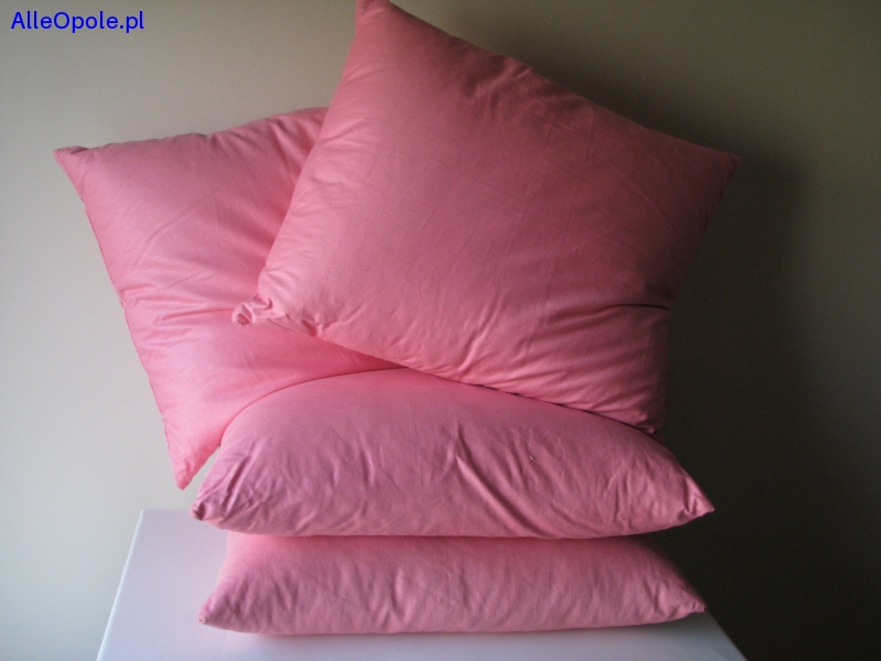 Witam, Sprzedam 4 poduszki – „jaśki” wypełnione naturalnym wsadem z ręcznie dartego pierza i puchu o wymiarach 45 cm x 40 cm i grubości ok. 13 cm. Poszycie poduszek wykonane jest z naturalnej tkaniny bawełnianej – solidnego płótna wsypowego, odpornego na przebijanie się pierza. Poduszki są obficie wypełnione, tylko mieszanką pierza i puchu, dartego i selekcjonowanego ręcznie (nie rozdrobnionego maszynowo), nie ma w nich żadnych dodatków włókna silikonowego czy kawałków gąbki. Dzięki naturalnemu wypełnieniu są sprężyste, nie zdeformują się oraz zachowają długą trwałość i żywotność. 2 poduszki są nieużywane a 2 poduszki „gościnnie” użyte kilka razy. Poduszki z przeznaczeniem jako element posłania, ale też, w odpowiedniej poszewce, z powodzeniem będą służyć jako poduszki dekoracyjne. Cena za poduszkę 14 zł, cały komplet 50 zł. Zapraszam do zakupu :)