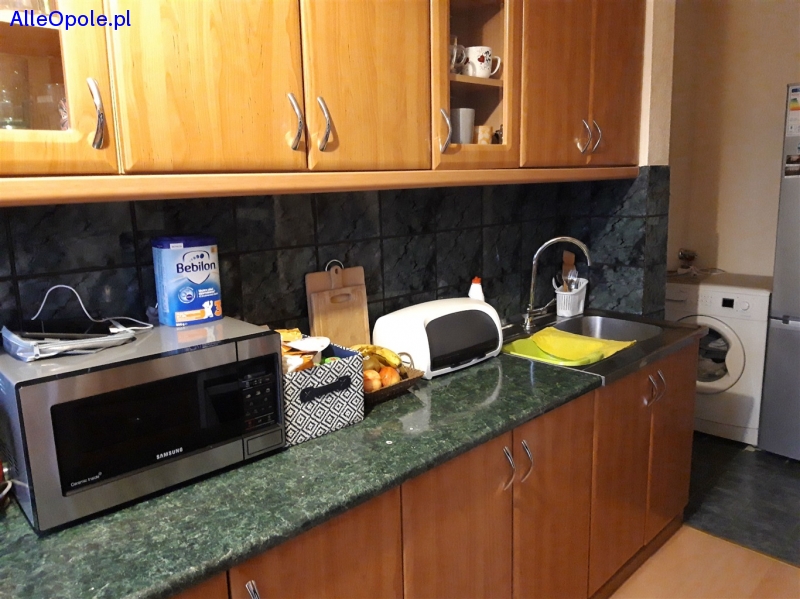 W mieszkaniu pozostaje zabudowa kuchenna i bardzo duża szafa z drzwiami przesuwnymi oraz meble pokoju dziecięcego.