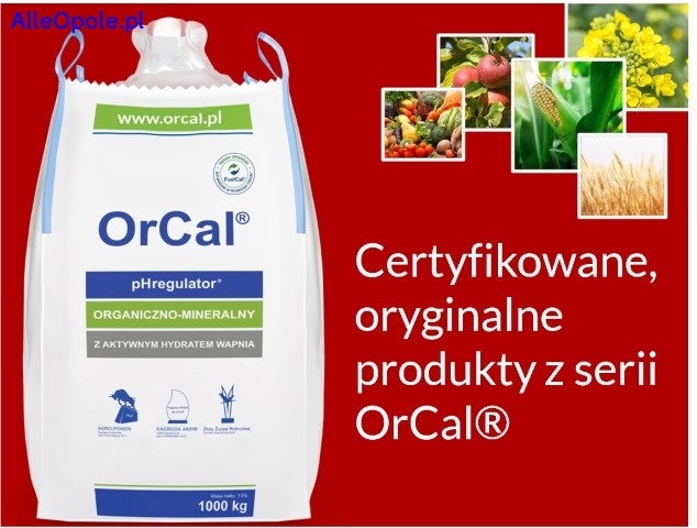 OrCal – recepta na większe plony! Istotą szybkiego i skutecznego działania OrCal hydrat wapnia i jego rozpuszczalność w wodzie – 1,7g/1000ml, co jest doskonałym, prawie 100 razy lepszym, wynikiem w porównaniu z rozpuszczalnością - węglan wapnia - kreda i dolomit – 0,02g/1000ml. Efekty już w pierwszym plonie! 1 tona - raz na 2-3 lata. Tylko nasz OrCal - na uprawy polowe, warzywa, sady, łąki i pastwiska. Ograniczenie strat, gdy susza. Neutralizacja - metale ciężkie. Tanie wapnowanie. Antydzik. Cena za 1 t - od 359 zł netto, 2 tony nawet po 1 zł netto w specjalnej promocji.