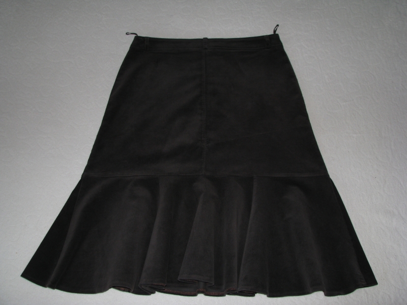 Sztruksowa spódnica z kloszem, kloszowana, brąz, rozm. 44