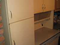 Sprzedam stary, bardzo funkcjonalny, solidny kredens kuchenny z przystawką z okresu PRL (lata 60-te) w kolorze ciepłego beżu z dodatkami popielu (siwego).