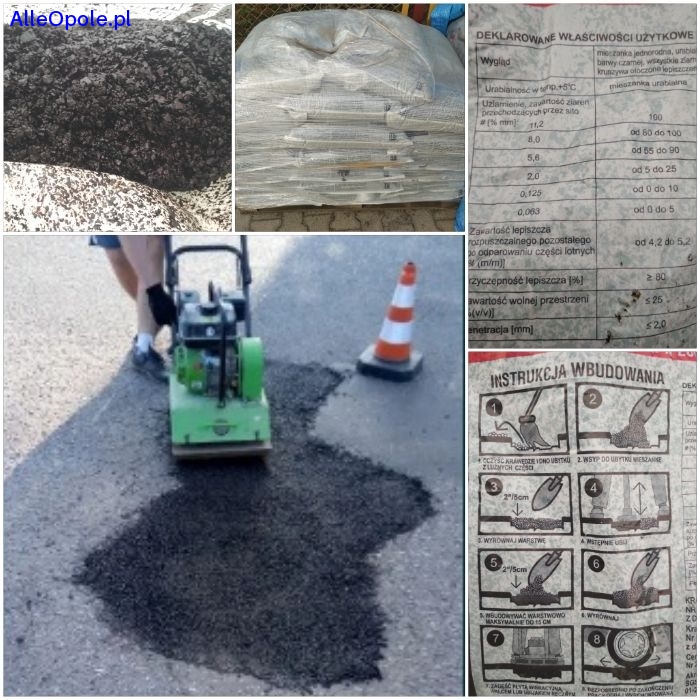 Nadaje się do układania, wypełniania ubytków w drogach, chodnikach, uzupełniania nawierzchni przy studzienkach, krawężnikach, uzupełnianie nawierzchni po przekopach, itp.