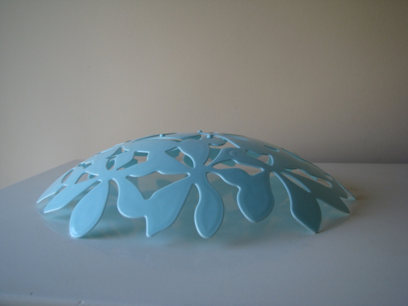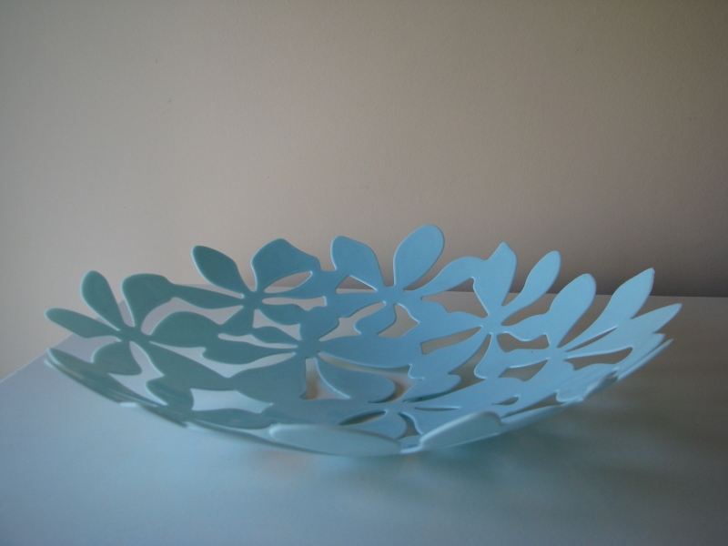 Witam, Sprzedam bardzo oryginalną, dekoracyjną paterę w pięknym, pastelowo-niebieskim kolorze i ciekawym, ażurowym wzornictwie, złożonym z elementów przypominających kwiaty lub pięciopalczaste liście kasztana. Patera od spodu posiada malutkie nóżki stabilizujące. Patera wykonana w ponadczasowym stylu, o proporcjonalnym kształcie i nieregularnym wykończeniu obrzeża, prezentuje się niezwykle gustownie i elegancko. Może służyć jako pojemnik na owoce lub inne drobiazgi, może stanowić również samodzielną ozdobę wnętrza. Poza walorami dekoracyjnymi, jest praktyczną i funkcjonalną ozdobą, która pięknie zaprezentuje się w pomieszczeniu, wprowadzi do niego urozmaicenie, podkreśli styl i stworzy przytulną atmosferę. Patera jest niewiele używana, nie zniszczona, czysta, bez uszkodzeń – w stanie bardzo dobrym, widocznym na zdjęciach. Wymiary: wysokość: 8 cm, średnica: 33 cm. Zapraszam do zakupu :) …. oraz obejrzenia innych moich ogłoszeń.