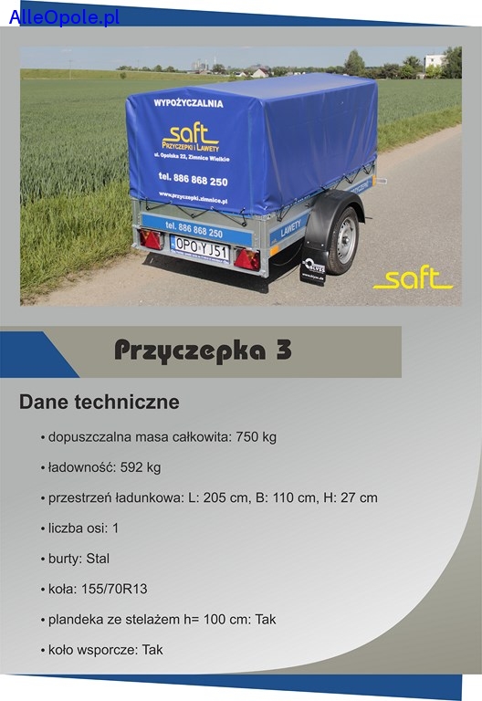 Cena dotyczy wypożyczenia przyczepki 2 metrowej na dobę.