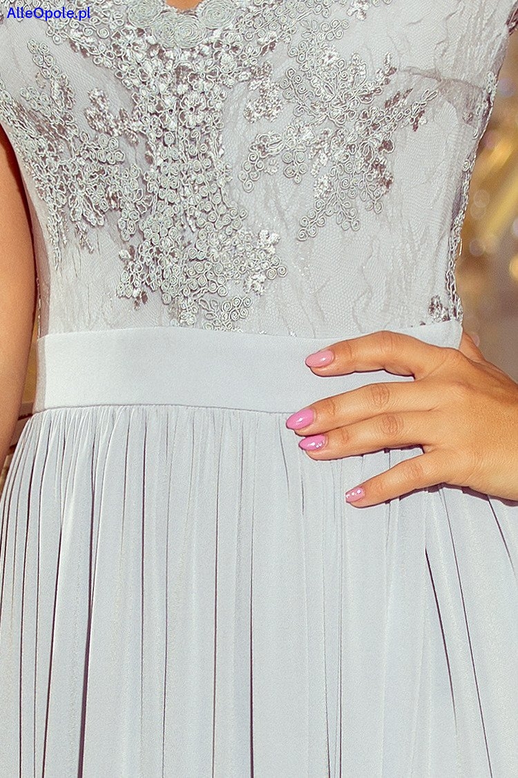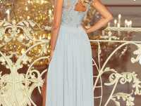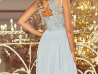 Długa suknia maxi z haftowanym dekoltem. Sukienka pięknie eksponuje dekolt i plecy. Zapinana z tyłu na guziczek i kryty zamek. Produkt polski.
