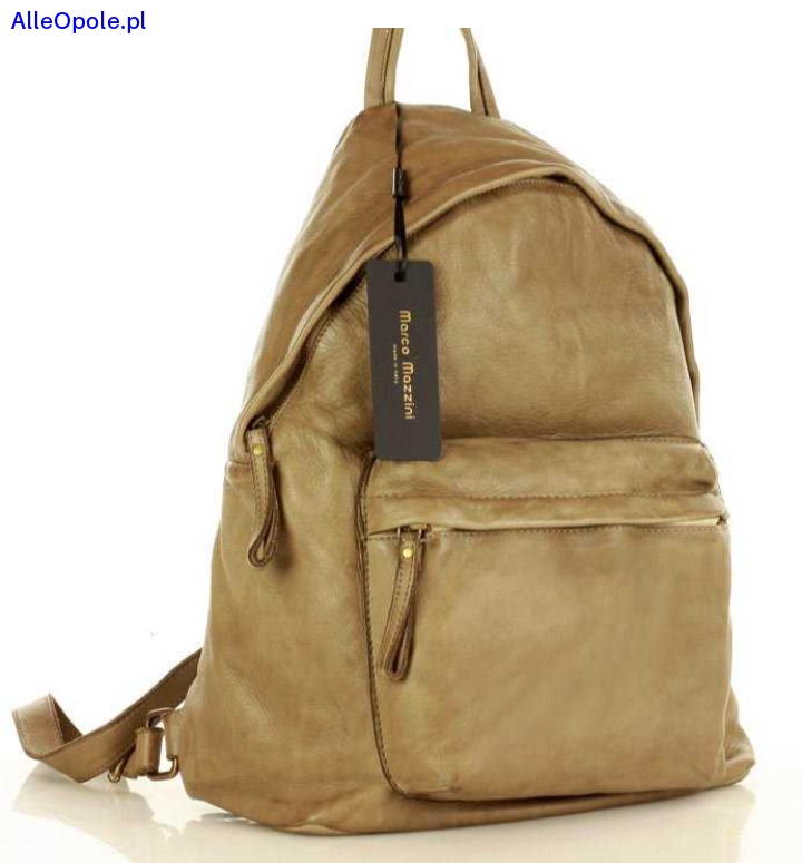Marco Mazzini Plecak skórzany damski globtroter z kieszenią z przodu beż taupe