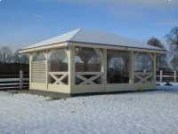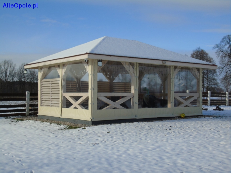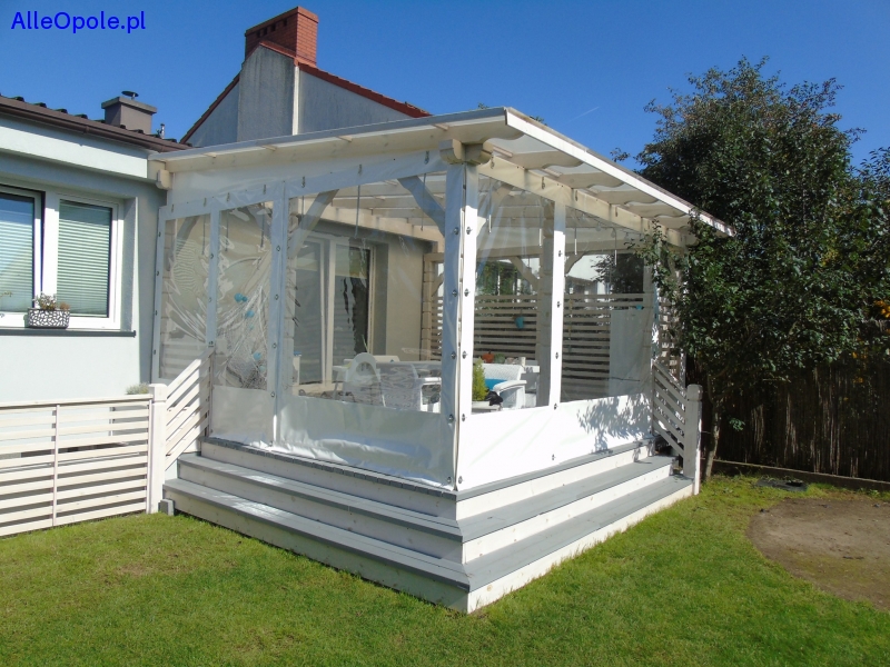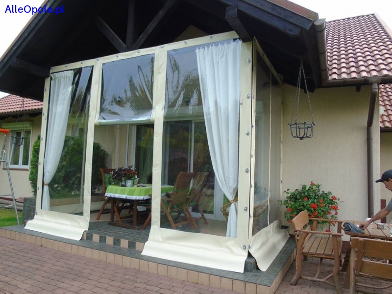 Osłony znakomicie zabezpieczają Państwa i Państwa gości przed chłodnym wiatrem, deszczem lub śniegiem. Pozwalają dłużej użytkować ogródek zimowy lub wiatę czy altanę, stanowiąc trwałe i tanie zabezpieczenie przed zimą. Wbudowane okna foliowe nie ograniczają widoczności, pozwalając dobrze doświetlić wnętrze zadaszenia.