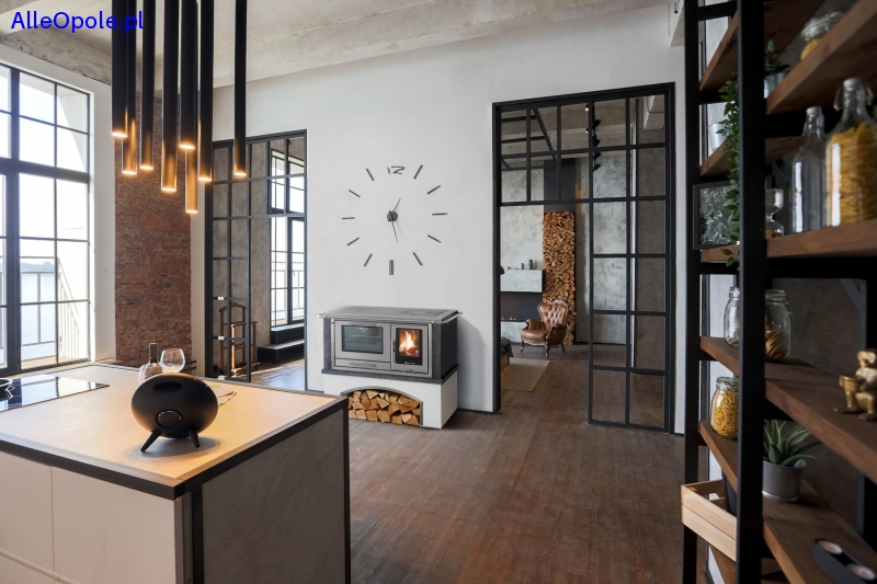 Czy tradycyjny piec kuchenny może mieć zastosowanie w nowoczesnych domach energooszczędnych z mechaniczną wentylacją z odzyskiem ciepła (rekuperacją)? Nie tylko może, ale przewyższa inne urządzenia grzewcze jakością, użytecznością, efektywnością i sprawnością. Posiada zamkniętą komorę spalania (bezpośredni dopływ powietrza z zewnątrz, więc nie zakłóca właściwego bilansu powietrza wewnątrz domu), nowoczesne palenisko bezrusztowe z podwójnym przeszkleniem z zawsze czystą szybą, a do tego może być wyposażony w jeden lub dwa wymienniki wodne do CO. W zależności od posiadania ilości wymienników wodnych, może ogrzewać powierzchnie 75 m2 i 150 m2. Poprzez bufor, może współpracować z pompą ciepła, kotłem gazowym lub na pellet. Powstająca energia cieplna w palenisku, gromadzona jest w pojemnej masie ceramicznej i później wolno oddawana w czasie (powyżej 12 godzin)-poprzez przyjemnie rozgrzane powierzchnie ceramiczne kuchni-do pomieszczenia, w postaci zdrowego promieniowania podczerwonego (przyjaznego także dla alergików). Do tak rozgrzanej kuchni, przyjemnie jest przylgnąć, a nawet się przytulić. Temperatura w pomieszczeniach jest stabilna, a nie rozchwiana, jak przy tanim kominku konwekcyjnym. Nie ma też efektu przegrzania przestrzeni wokół niej. Długotrwałą i stabilną pracę urządzenia, i systemu grzewczego, zapewnia duża pojemność cieplna masy kumulacyjnej i automatyka, bo kuchnia może pracować w trybie automatycznym lub manualnym. W trybie automatycznym rozpalamy ogień w palenisku, wciskamy na centralce „start”, a automatyka steruje za nas procesami palenia, przy zawsze czystej szybie i wysokiej sprawności. Jest bardzo bezpieczna w użytkowaniu, gdyż sterownik nie pozwala na popełnianie błędów. Gdy zawiedzie główne ogrzewanie domu (awaria, brak prądu), jest bardzo dobrym zabezpieczeniem, gdyż może pracować bez automatyki. Obsługa takiej kuchni jest łatwa, przyjemna i komfortowa. Jest na drewno liściaste (także iglaste) i brykiety drzewne. Przy paleniu brykietami drzewnymi, nie musimy nawet rąbać drewna i go sezonować. Kupujemy je, wkładamy do paleniska, a automatyka sama dalej w nim pali, bez naszego dozoru. Możliwe palenie tylko 2 razy dziennie (rano i wieczorem), gdyż energia z drewna kumuluje się w ceramice, a nie ucieka do komina. Dzięki temu, jej rozgrzane ściany nigdy nie stygną. Posiada konstrukcję zapewniającą całkowite i zupełne spalanie drewna (także z wymiennikami wodnymi), przy minimalnej emisji spalin (zero dymu z komina) i zawsze czystych szybach. Nie truje środowiska. Spełnia wymagania Ekoprojektu i najsurowsze normy europejskie (od stycznia 2022 r. każdy nowo wybudowany piec, kuchnia lub kominek musi być zgodny z Ekoprojektem 2022). Przeznaczona jest do budowy stabilnych hybrydowych nowoczesnych instalacji grzewczych (akumulacja+woda+DGP), dostosowanych do indywidualnych potrzeb, będąc przy tym wyśmienitym urządzeniem kuchennym i ekologicznym źródłem ciepła. Doskonale sprawdza się w starych-mniej ocieplonych lub nieocieplonych-budynkach (także wielorodzinnych), w których ogrzewanie gazowe jest drogie i nieefektywne. Jej piekarnik, wyłożony szamotem, bez problemu rozgrzewa się do ponad 300 stopni C! Z łatwością piecze pizze i chleby. Może być usytuowany za ścianą, w przyległym pomieszczeniu, w ścianie grzewczej i w tamtym pomieszczeniu użytkowany. Kuchnia może posiadać podwójnie przeszklone drzwi paleniska na przestrzał, z dwóch stron. Gdy będzie posadowiona na granicy dwóch pomieszczeń, ogień w palenisku będzie widoczny także w pomieszczeniu za ścianą. Gdy w obszerniejszej izbie kuchennej będzie zamontowana jako półwysep, ogień będzie widoczny po obu stronach kuchni, w każdym punkcie pomieszczenia. Nie ma innego urządzenia grzewczego, które by tak efektywnie i wszechstronnie wykorzystywało energię cieplną. Ona jedna posiada w sobie sumę zalet wszystkich innych dostępnych urządzeń na paliwa stałe. I samodzielnie, z powodzeniem, może je wszystkie zastąpić. Piec kuchenny, zamiast płaszcza kaflowego, może posiadać przyjemnie rozgrzane szamotowe ściany o strukturze surowego betonu lub drewna, ściany gładkie tynkowane lub tynkowane na styl starej polepy, obłożone kamieniem, cegłą lub spiekami kwarcowymi, ściany szamotowe malowane farbami dekoracyjnymi o szerokiej palecie efektów wizualnych i inne. Wszystkie wersje ścian wypromieniowują ciepło w sposób stabilny i zrównoważony. Dobrze zaprojektowany piec może być ozdobą kuchni rustykalnej, jak i tworzyć futurystyczne kompozycje wpisane w awangardowe wnętrza. Tradycyjna kuchnia nie musi być już tylko kaflowa, ale może mieć każdy rodzaj okładziny zewnętrznej, pasującej do wnętrza. Obłożona płytami z prawdziwego naturalnego betonu architektonicznego, świetnie wpisuje się w koncepcję domu nowoczesnego. W zależności od wyboru koloru i struktury płyty betonowej, uzyskuje się dopełnienie koncepcji klasycznej, skandynawskiej, minimalistycznej, loftowej lub industrialnej.