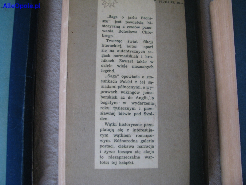 Sprzedam powieść historyczną Władysława Jana Grabskiego „Saga o Jarlu Broniszu”, wydaną w 3 tomach w 1961 r przez Instytut Wydawniczy PAX, na który składają się pozycje: