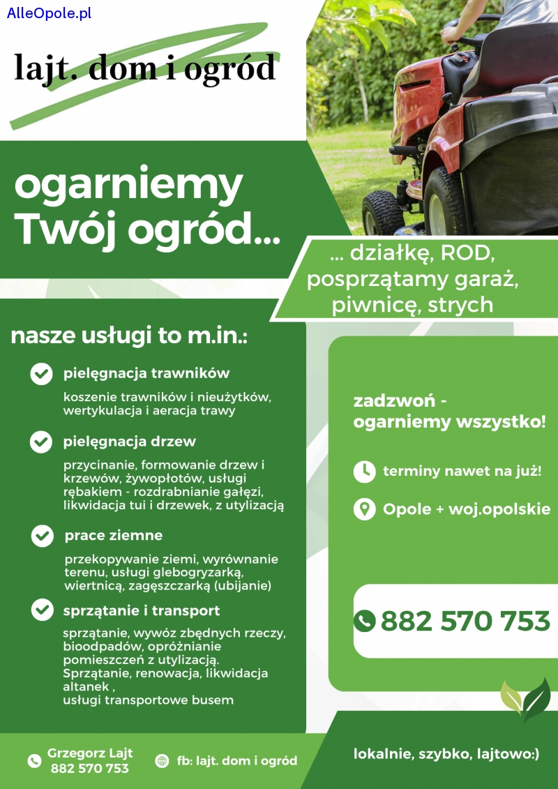 Koszenie, pilęgnacja terenów zielonych, prace ziemne, transport