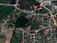 Działka mieści się w cichej okolicy, z dala od drogi głównej, w okolicy domów jednorodzinnych i stawu.