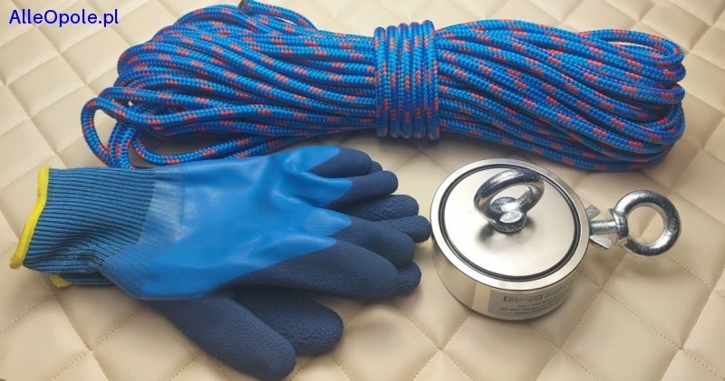 Uchwyt magnetyczny neodymowy F300x2 Fi 97x40 M10 M10 +lina i rękawice komplet.