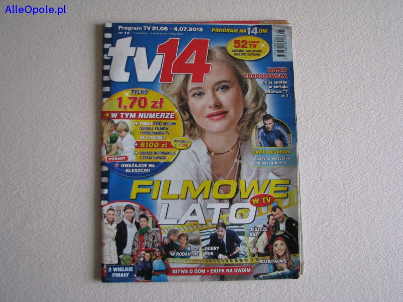 Sprzedam archiwalne wydanie dwutygodnika magazynu telewizyjnego Tv14 nr 13 z 2013 roku. W środku m.in. David Becham, Marta Chodorowska.