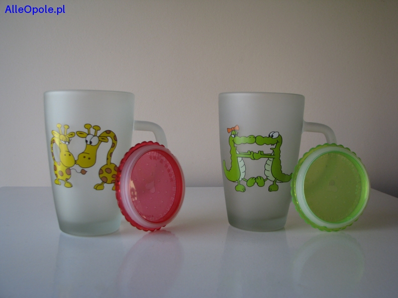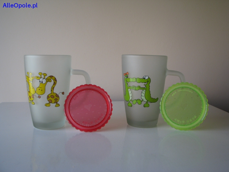 Kubki są solidne, o stożkowatym, zwężanym ku dołowi, kształcie i wyposażone w poręczne uszko do ich podnoszenia oraz szczelną pokrywkę zapobiegającą utracie ciepła lub zachowaniu zimna. Dodatkowego uroku dodaje im ozdobny nadruk zakochanych żyraf i wirujących krokodylków.