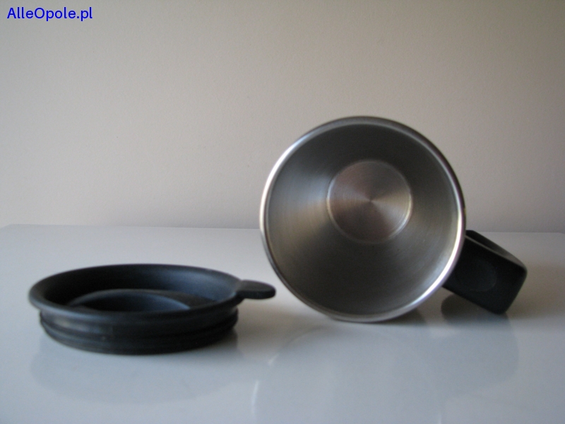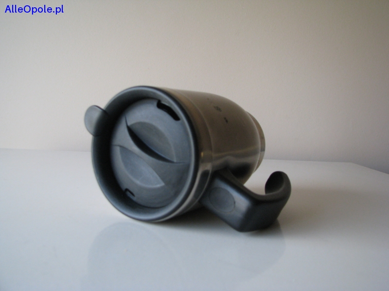 Pokrywka i uchwyt wykonane są z plastiku. Otwór w pokrywce umożliwia picie bez otwierania kubka (system ONE TWIST).