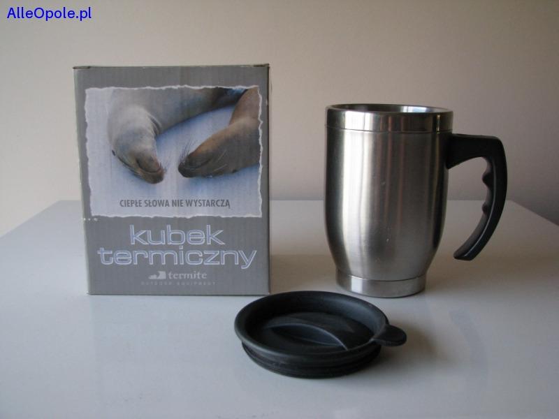 Sprzedam bardzo praktyczny kubek termiczny marki Termite z pokrywką i poręcznym uchwytem.