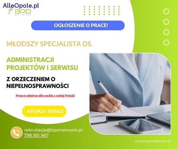 Młodszy Specjalista/Specjalistka ds. Administracji Projektów i Serwisu z orzeczeniem o niepełnosprawności - praca zdalna dla osób z całej Polski
