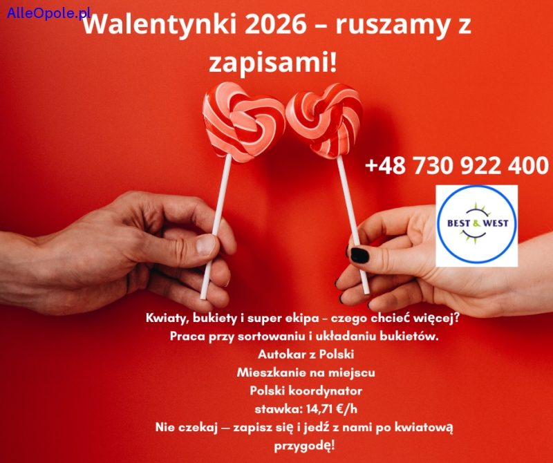 Agencja Pośrednictwa Pracy Bestenwest Work Sp. z o.o. (nr. licencji 13657) poszukuje dla swojego klienta osób chętnych do pracy na Akcji Walentynkowej 2026