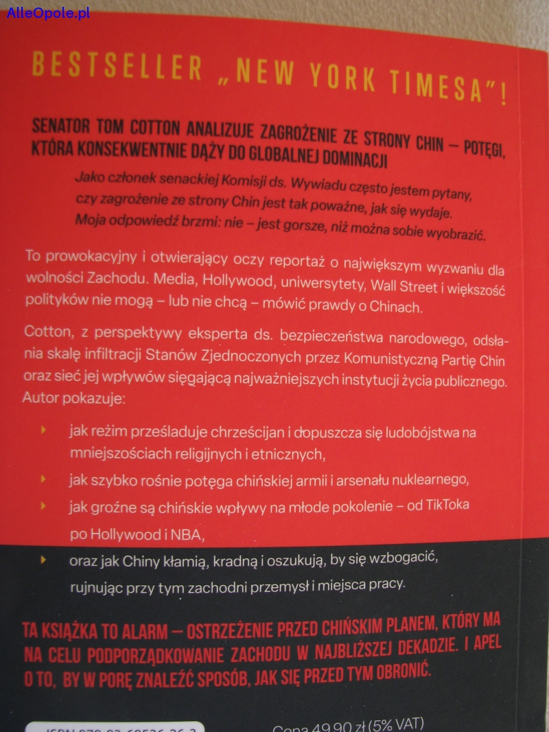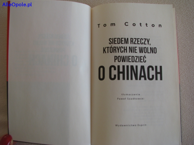 Sprzedam książkę Toma Cotton „Siedem rzeczy których nie wolno powiedzieć o Chinach”, wydaną w 2025 r. przez Wydawnictwo Esprit. Wydanie I.