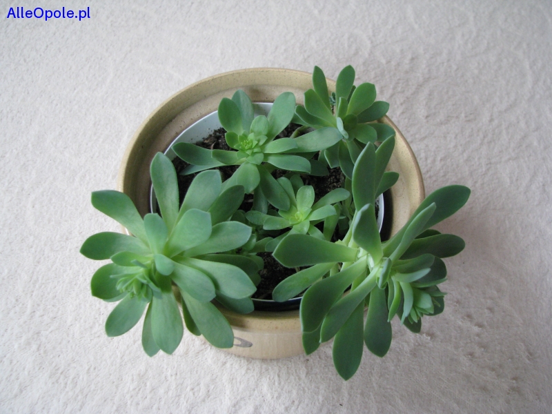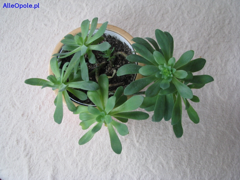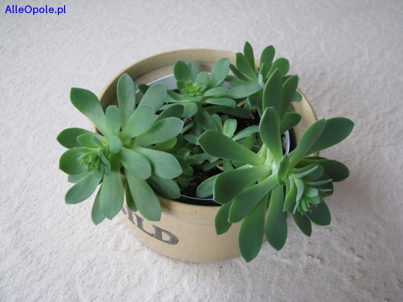 Sprzedam aeonium – piękny sukulent – dekoracyjny, zielony kwiat z zaokrąglonymi rozetami, o średnicy korony ok. 20 cm.