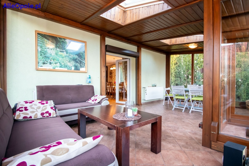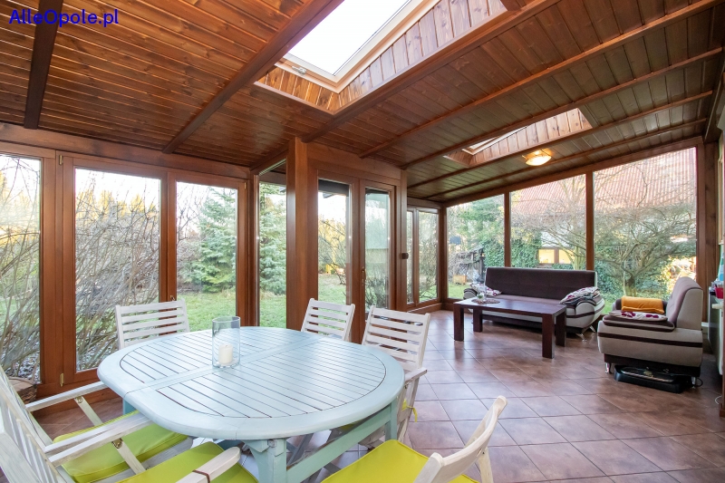 Parter: salon połączony z kuchnią, WC, ogród zimowy.