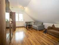 - przestronny salon z kominkiem, aneksem kuchennym, częścią jadalną oraz wyjściem na taras i ogród,