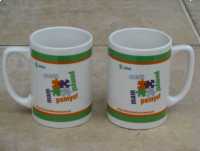 Sprzedam pamiątkowy, biały kubek porcelanowy z kolorowym motywem puzzli wyprodukowany dla ZAK SA Kędzierzyn – głównego sponsora klubu siatkarskiego ZAKSA jeszcze przed połączeniem z Grupą Azoty.
