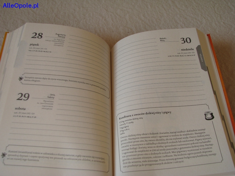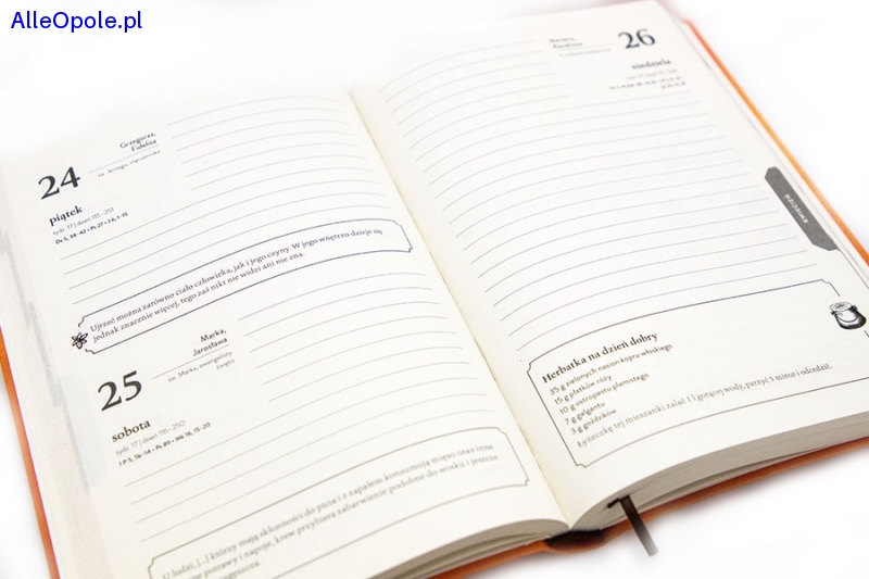 Wymiary kalendarza: 21 cm x 14,5 cm, grubość 2 cm - wielkość bardzo poręczna, zarówno do przenoszenia, jak i do torebki. Kalendarz idealny zarówno do planowania zajęć, zapisywania notatek, jak i poczytania. Przyda się w pracy, w kuchni i w wolnej chwili :)