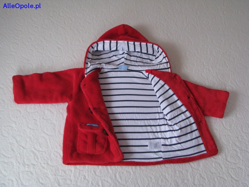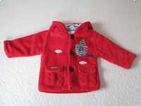 Sprzedam śliczną, pluszową i cieplutką kurteczkę dla dziewczynki z kapturem, marki 5-10-15 w rozmiarze 86 cm, w ładnym czerwonym kolorze.