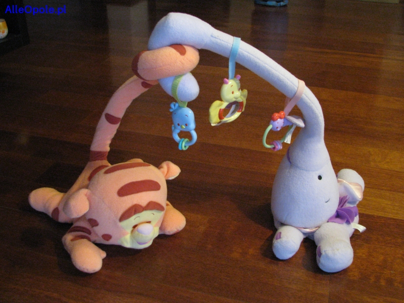 Ogon tygryska i trąbę słonika można dowolnie kształtować - złączone ze sobą tworzą mostek, na którym wiszą grzechotki. Wysokość mostka można dowolnie regulować oraz zawiesić na nim inne dodatkowe zabawki. Wszystkie elementy można używać z osobna jako pojedyncze zabawki – przytulanki.