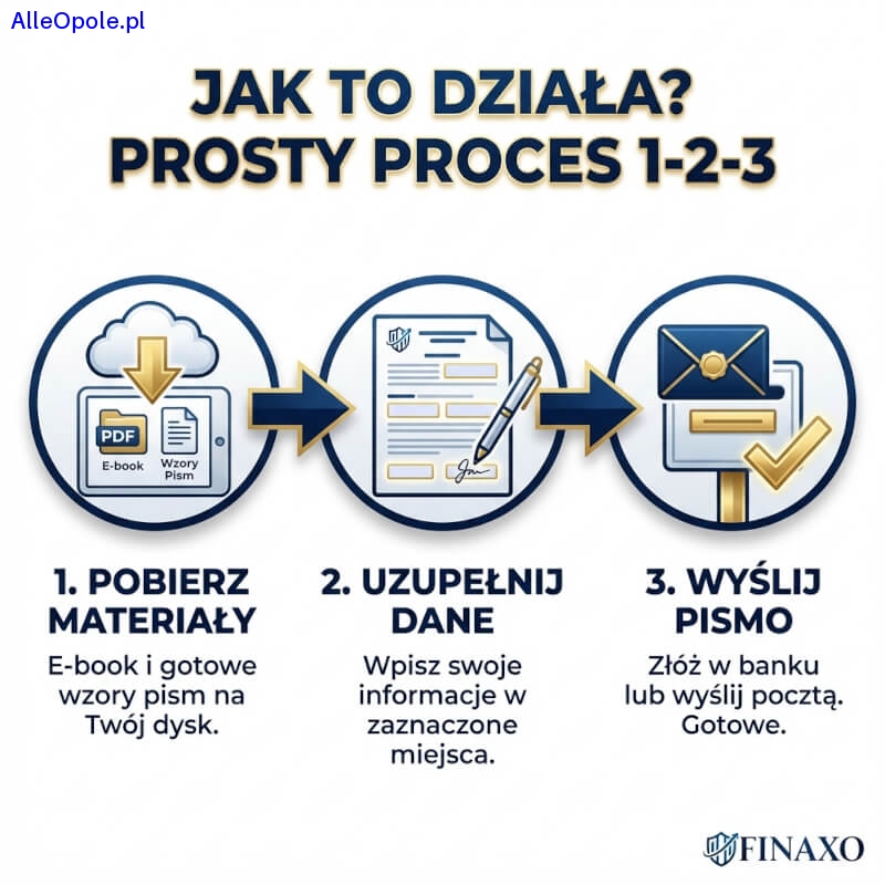 Otrzymujesz praktyczną instrukcję działania oraz pisma, które wystarczy uzupełnić swoimi danymi i wysłać — bez zgadywania, od czego zacząć.