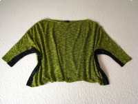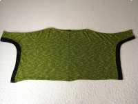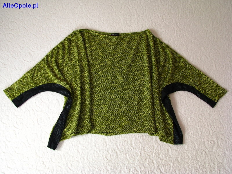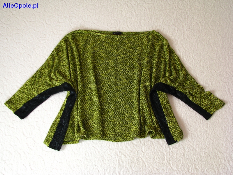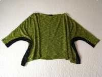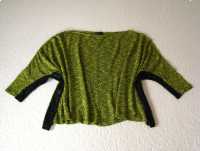 Sweterek wykonany z bardzo przyjemnej w dotyku, przelewającej się i zwiewnej dzianinki w kolorze zielono-czarnego melanżu.