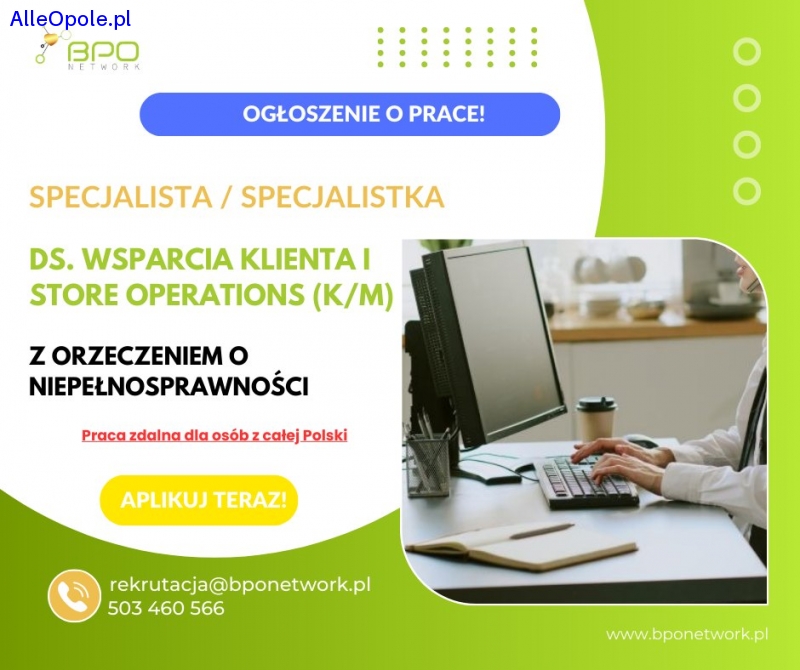 Specjalista/Specjalistka ds. Wsparcia Klienta i Store Operations z orzeczeniem o niepełnosprawności - praca zdalna dla osób z całej Polski
