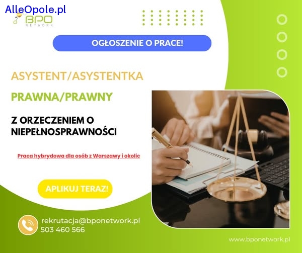Asystent Prawny/Asystentka Prawna z orzeczeniem o niepełnosprawności - praca hybrydowa dla osób z Warszawy i okolic