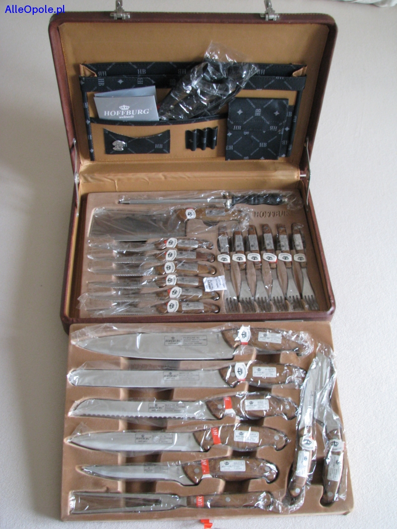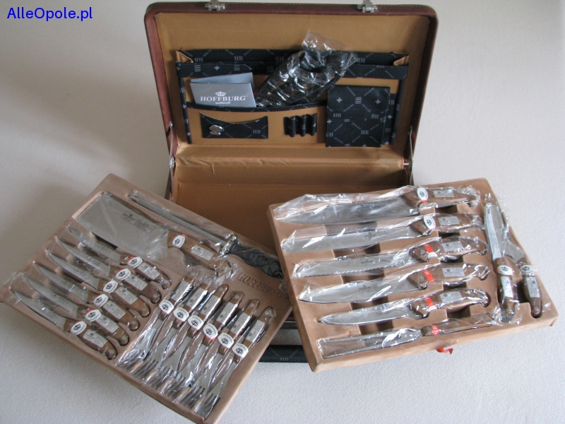 Sprzedam elegancki, 24 częściowy, kuchenny zestaw sztućców i przyborów do steków i profesjonalnego grillowania austriackiej marki Hoffburg specjalizującej się w produkcji wysokiej jakości sztućców oraz akcesoriów stołowych z nierdzewnej stali szlachetnej klasy Premium.