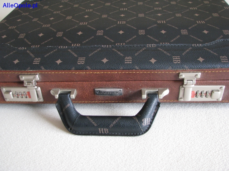 Walizka wykonana jest z trwałej skóry ekologicznej, zamykana na dwa szyfrowe zamki, od spodu wyposażona w metalowe nóżki chroniące przed przetarciem i zabrudzeniem stawianej walizki.