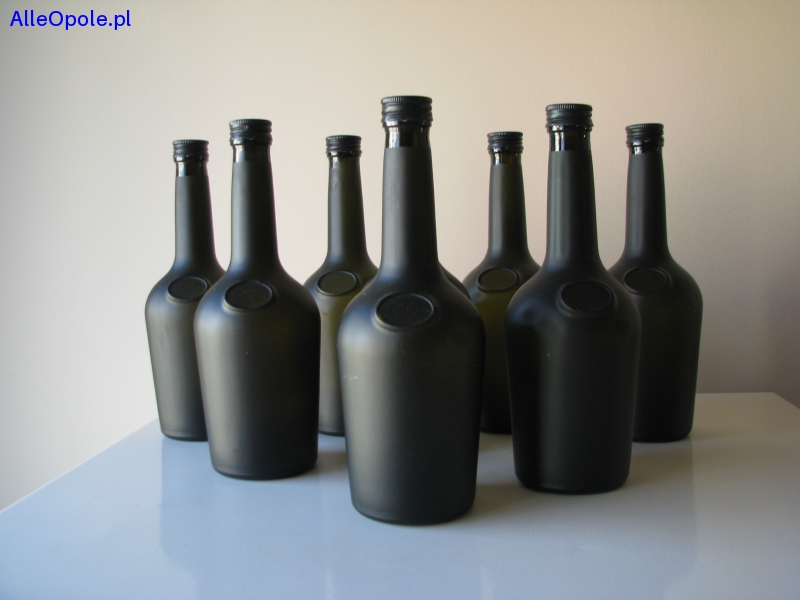 Butelki 0,5 l z nakrętkami z ciemnego szkła, satynowy połysk na trunki
